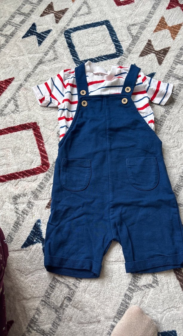 Erkek Çocuk Mavi Kot Salopet ve Çizgili Tişört