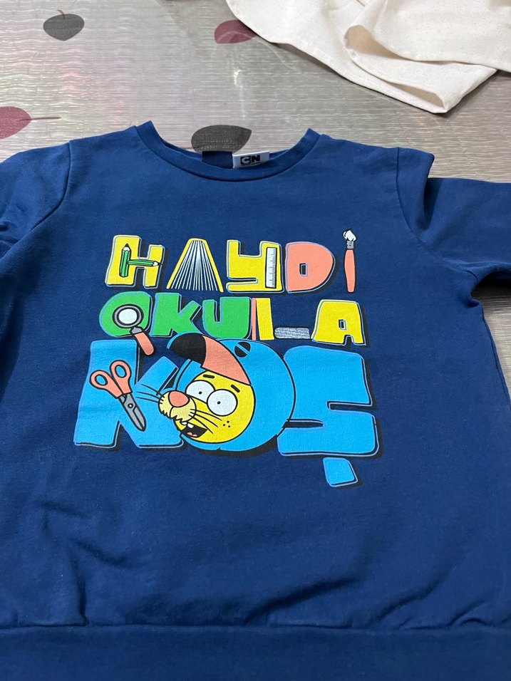 LCW marka, 4-5 yaş erkek çocuk için, Mavi, yuvarlak yakalı, uzun kollu ve bol kesim Kral Şakir baskılı sweatshirt.