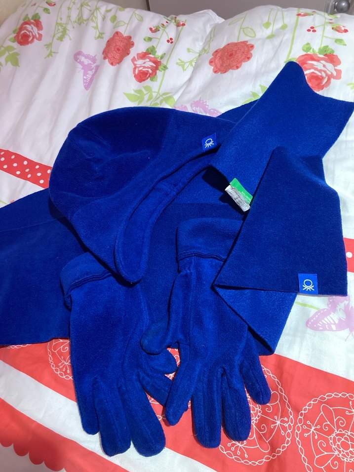 Erkek Çocuk Mavi Örgü Eldiven, şapka, kaşkol