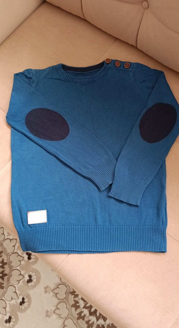 uzun kollu ve dirsek detaylı örgü erkek çocuk kazak.