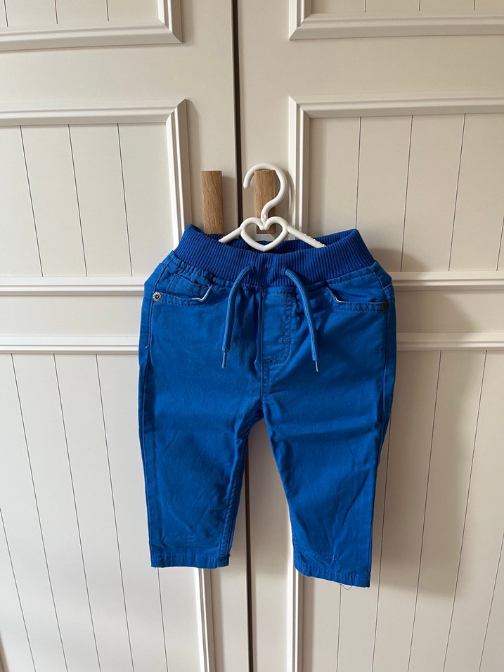 Erkek çocuklar için mavi pantolon, tokalı ve bağcıklı bel ile rahat ve şık. Günlük kullanıma uygun, sade tasarım. Temiz ve sorunsuzdur. 1 kere giyildi . Küçük geldiği için satışta