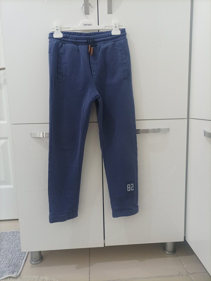 Erkek çocuklar için mavi denimden, rahat kesim ve gri detaylı eşofman altı. Yan cepler ve lastikli bel ile rahat ve şık.