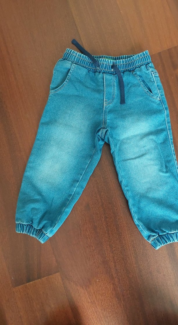 Erkek çocuklar için elastik bel ve paçalı, rahat kesim mavi kot pantolon. Canlı renkleriyle günlük sokak stiline uygun. 3 4 yas