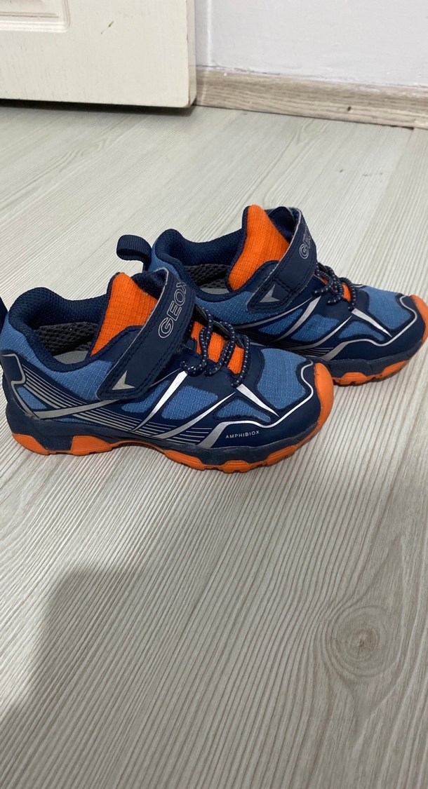 Erkek çocuklar için renkli baskılı ve cırt cırtlı Geox spor ayakkabı. Kauçuk tabanlı, trend sokak tarzı ayakkabı.