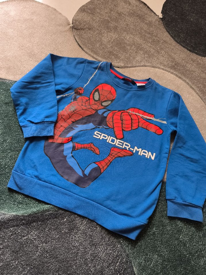 Uzun kollu, bisiklet yakalı, yumuşak fleece kumaştan yapılmış, renkli Spider-Man baskılı ve örme detaylı erkek çocuk sweatshirtü. ️