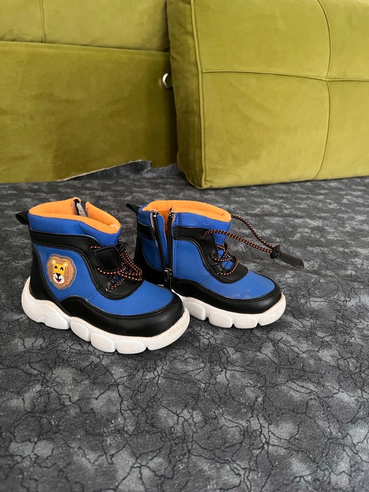 Renkli mavi ve leopar desenli, kauçuk malzemeden üretilmiş erkek çocuk botları. Streetwear tarzı ve Velcro kapamalı, trend bir casual görünüm sunar. Sadece 2 defa giyildi