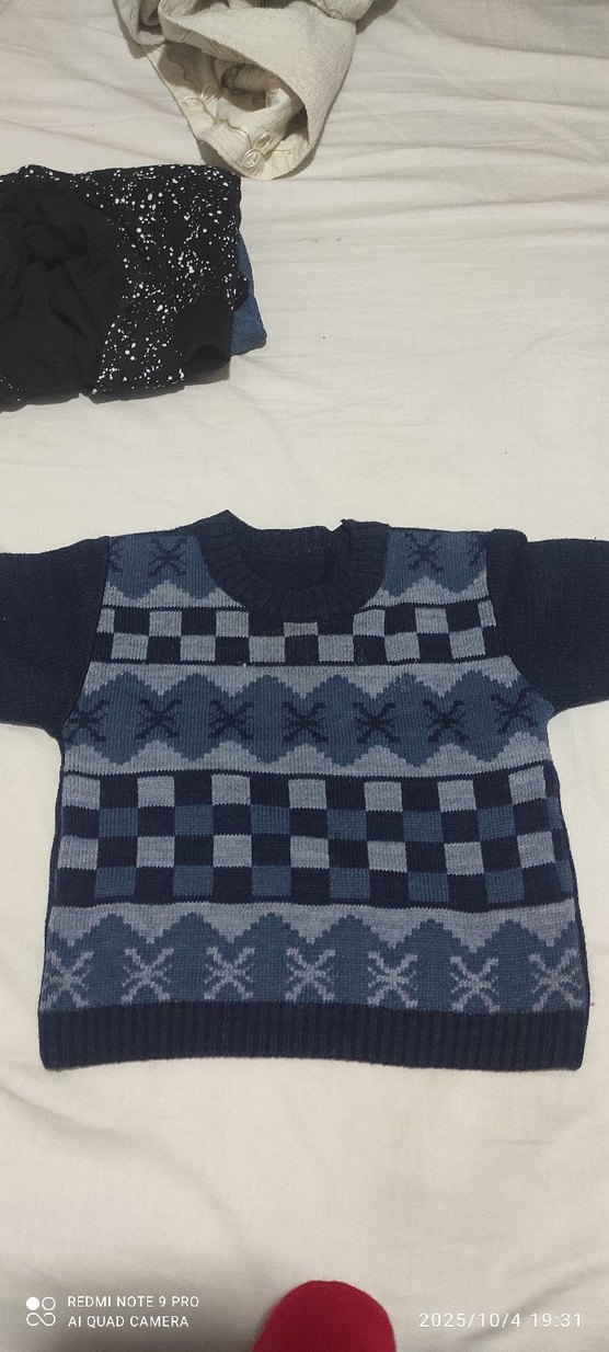 Erkek Çocuk Mavi Triko Kazak ve kapüşonlu swit
