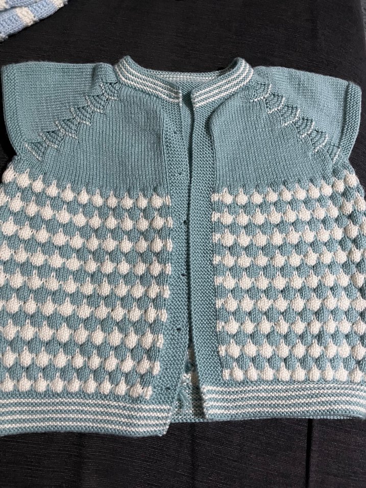 Erkek çocuklar için mavi ve beyaz renklerde, örme kumaştan yapılmış kolsuz, fitted süveter. Yumuşak ve rahat triko kumaş. Sıfırdır hiç kullanılmadı