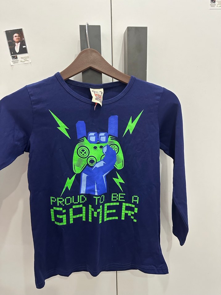 Erkek çocuk için uzun kollu, bisiklet yaka, renkli baskılı ve düğmeli detaylı, yumuşak ve sıcak kumaştan yapılmış mavi sweatshirt.