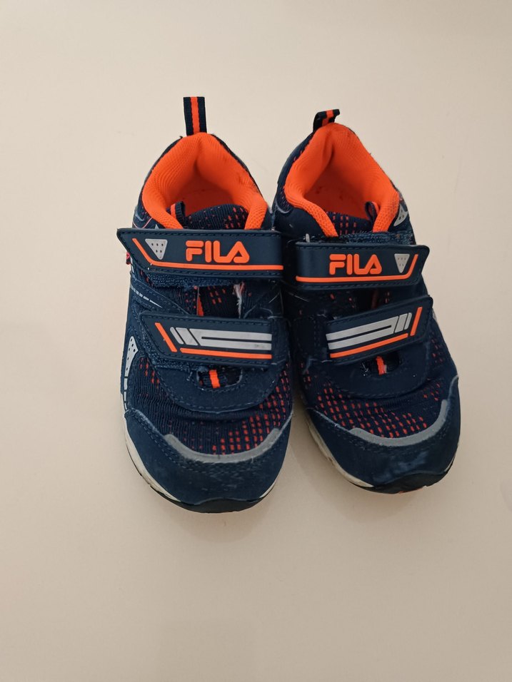 FILA marka, mavi renk, renkli baskılı, velcro bantlı, erkek çocuk spor ayakkabısı.
