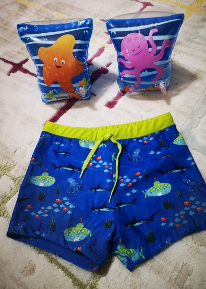8-9 yaş deniz & havuz mayosu ve kollukları Defosuz, az kullanılmış
