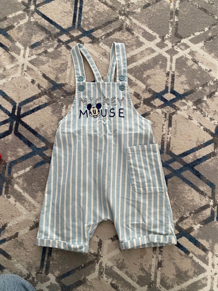 Erkek Çocuk Mickey Mouse Çizgili Askılı Tulum