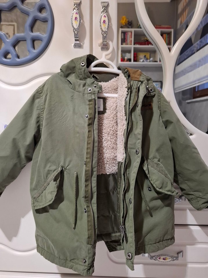 Erkek çocuklar için gri renkte, bol kesimli, kürk detaylı ve yumuşak iç astarlı mont. hem yazlık hem kışlık ikisi iç içe de kullanılıyor ayrı ayrı da 4 5 yaş