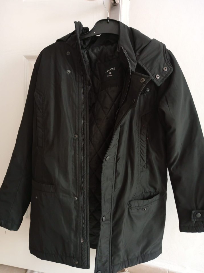 Düğmeli ön ve kesik yaka detaylı, bol kesim erkek çocuk kabanı. Yumuşak ve sıcak tutan siyah kumaştan, street wear tarzında. kücük oldugu icin satıyorum
