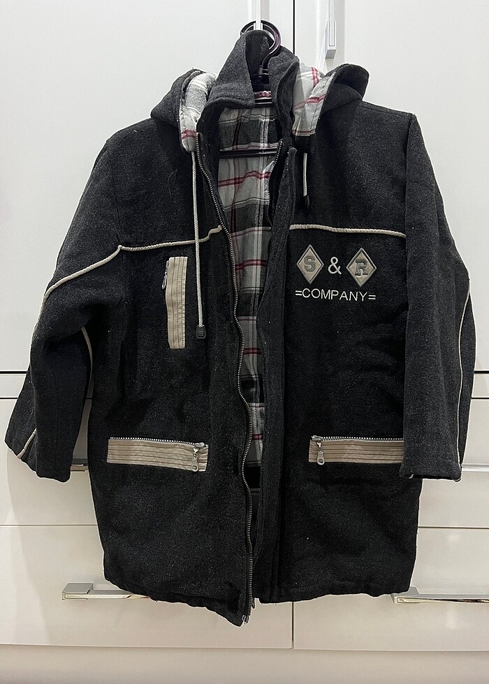 Erkek çocuk dışı kaşe mont kaban. Tertemiz. Yırtığı söküğü yok. Omuzdan uca boyu: 66cm En: 53cm Kol boyu: 47cm