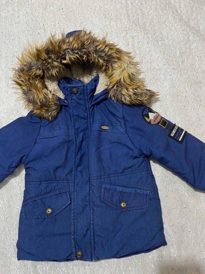 Lacivert Erkek çocuk mont 1 sezon 3/4 Ay giyilmiştir hiçbir deformesi yoktur içinde yün detayı var şapkasında detayı mevcut çocuk çabuk geliştiği için Her yıl mont değişikliği yapılıyor fiyatı uygun tuttum sondur.