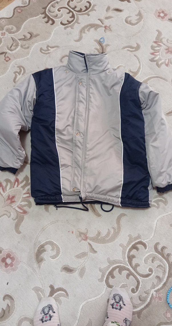 Fermuarlı, yakalı, gri ve lacivert panelli, sokak tarzı erkek çocuk mont. Yumuşak kumaşıyla sıcak tutar.