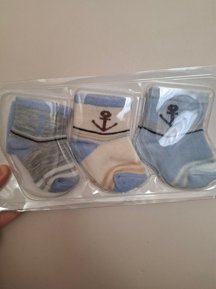 Nakışlı çapa desenli, mavi ve gri tonlarda üç çift erkek çocuk çorabı seti. Yumuşak ve rahat dokuda ⚓ yenidogan