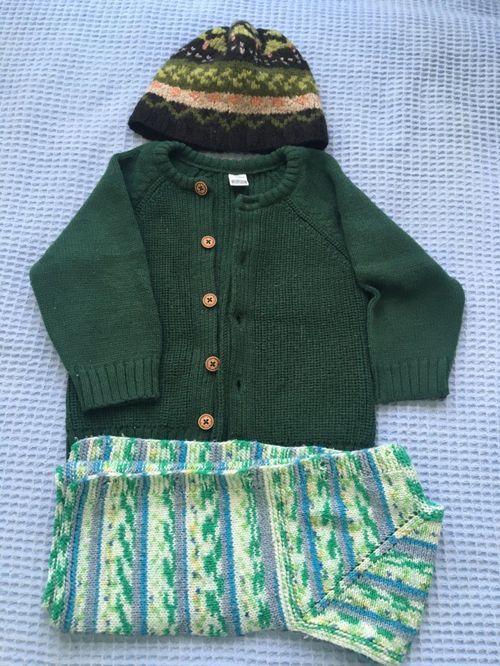 Erkek çocuklar için, bol kesim ve uzun kollu, düz yeşil renkte örgü bohem tarzda hırka. Ahşap düğmeli, yumuşak örgü kumaştan yapılmıştır.