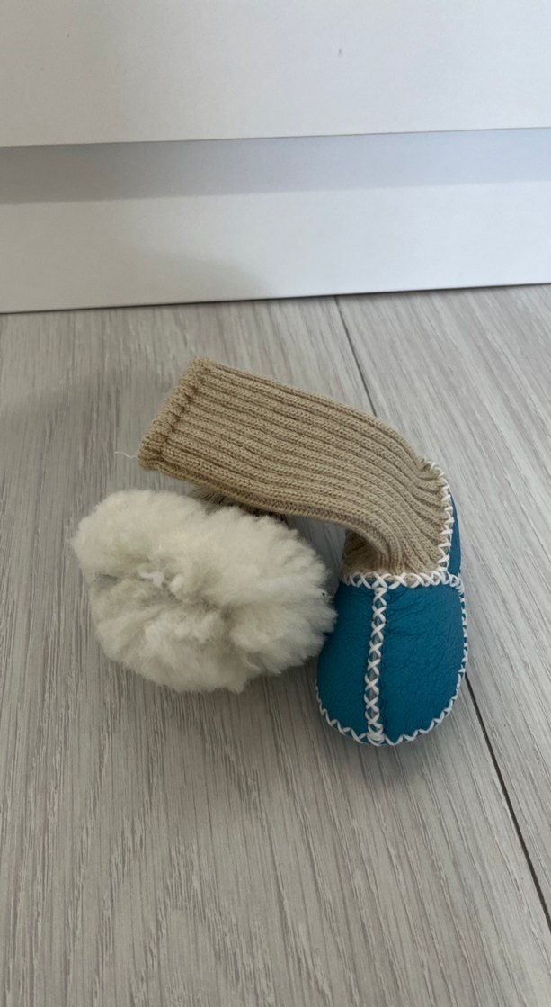 Örgü detaylı mavi renkli erkek çocuk ev terliği, yumuşak ve sıcak iç kısmıyla rahatlık sağlar. Gri örgü manşetleri bulunur. İçi yünlüdür fotosunu çektim. Biz hiç giyemedik sayılır tertemiz