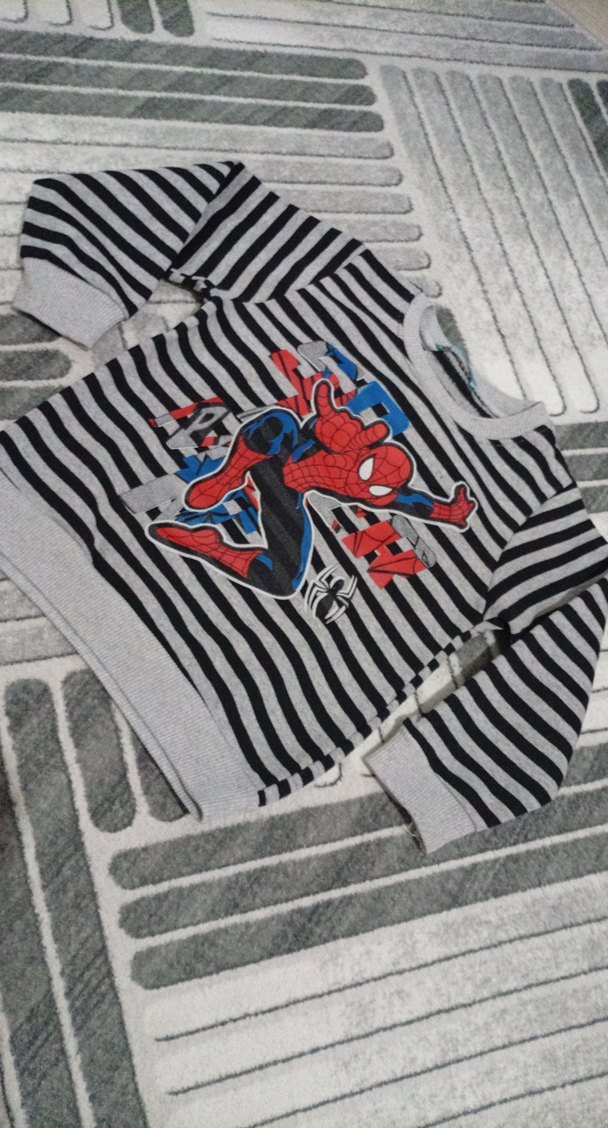 Uzun kollu, bisiklet yaka ve örme dokulu erkek çocuk sweatshirtü. Gri çizgili desene ve önünde renkli Örümcek Adam baskısına sahiptir. Trendy günlük stil için uygundur. ️