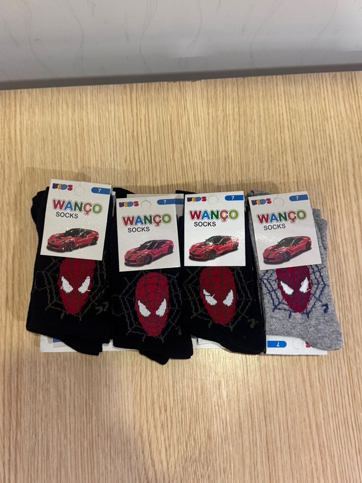 Karanlık çok renkli, Örümcek Adam yüzü ve ağ desenli erkek çocuk çorapları, WANCO markalı. 12 Çift ❗️❗️ 7 Yaş ❗️❗️