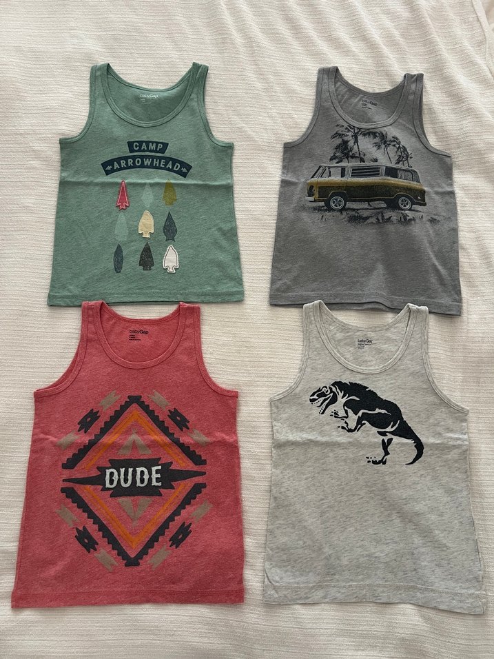 Pamuklu, baskılı ve askısız erkek çocuk tişörtleri. Gevşek kesim, retro ve bohem tarzda, ağaç, minibüs, dinozor ve geometrik desenler içerir.