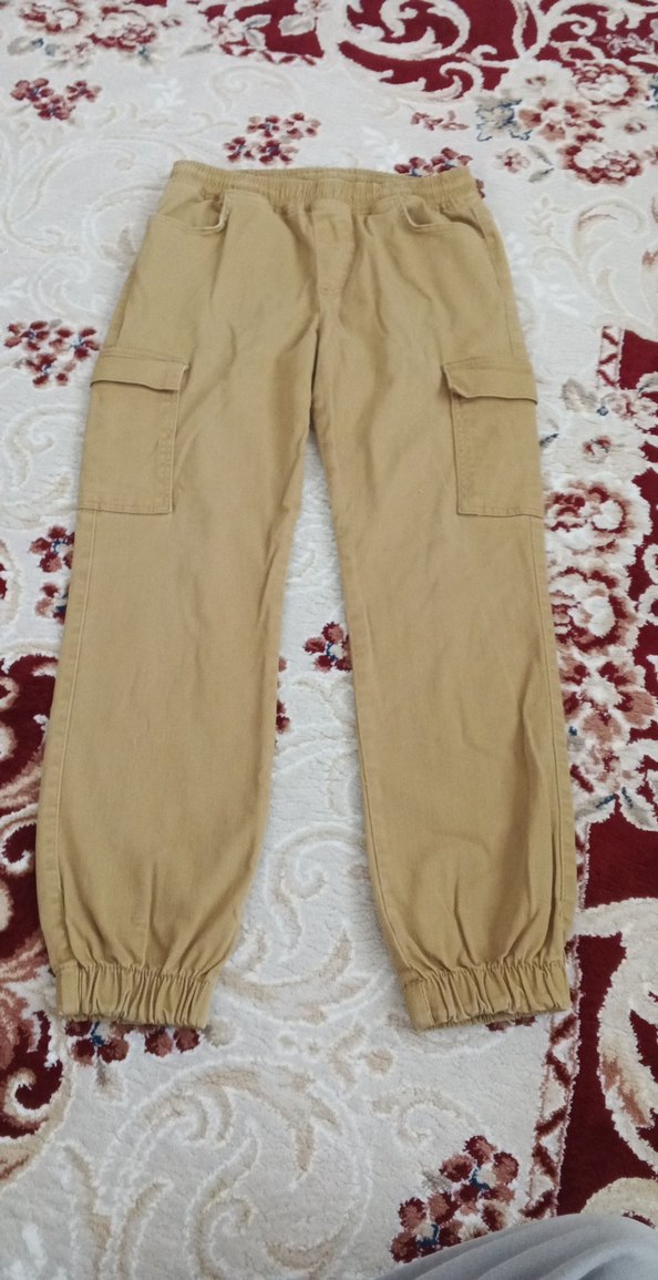 Bej renkte, pamuklu kumaştan yapılmış, rahat kesim ve pantolon. Lastikli paça ve yan cepleriyle outdoor kullanıma uygun.