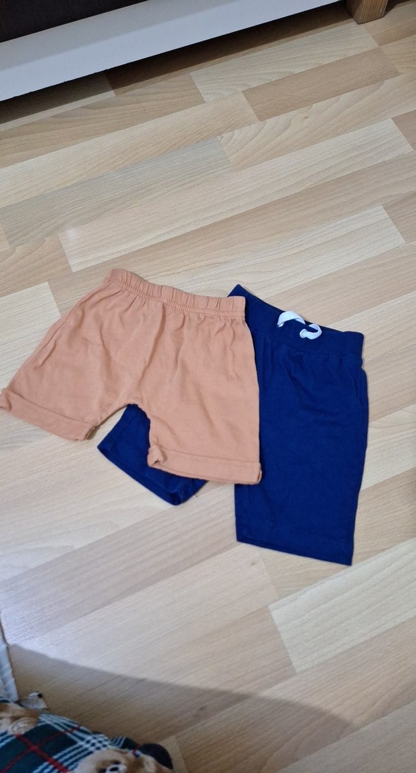 Pamuklu, rahat kesim, pastel renk tonlarında, desen içermeyen erkek çocuk şortları.