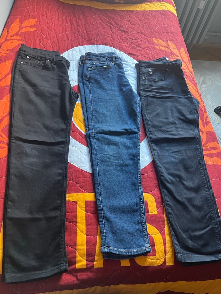 3 adet pantolon hiçbir sıkıntısı yoktur çok az giyildi biri us polo biri hm marka ve diğer markadan oluşan 3 adet pantolon