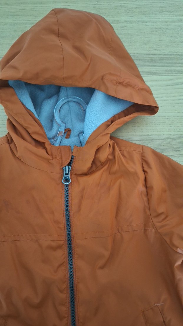 Erkek çocuklar için parlak kahverengi, fermuarlı ve kapüşonlu, yumuşak iç astarlı, dar kesim mont.