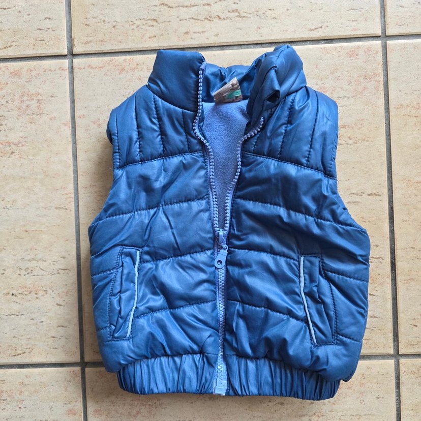 Parlak mavi renkli, fermuarlı ve cepli, kolsuz erkek çocuk yeleği. Yaka detaylı ve vücuda oturan kesime sahip, yumuşak ve sıcak kumaştan üretilmiştir. son resimde sanırım zamanla oluşmuş belli belirsiz leke farkettim omuzda kullanıma engel değildir genel olarak temizdir zaten sayılı giyildi.