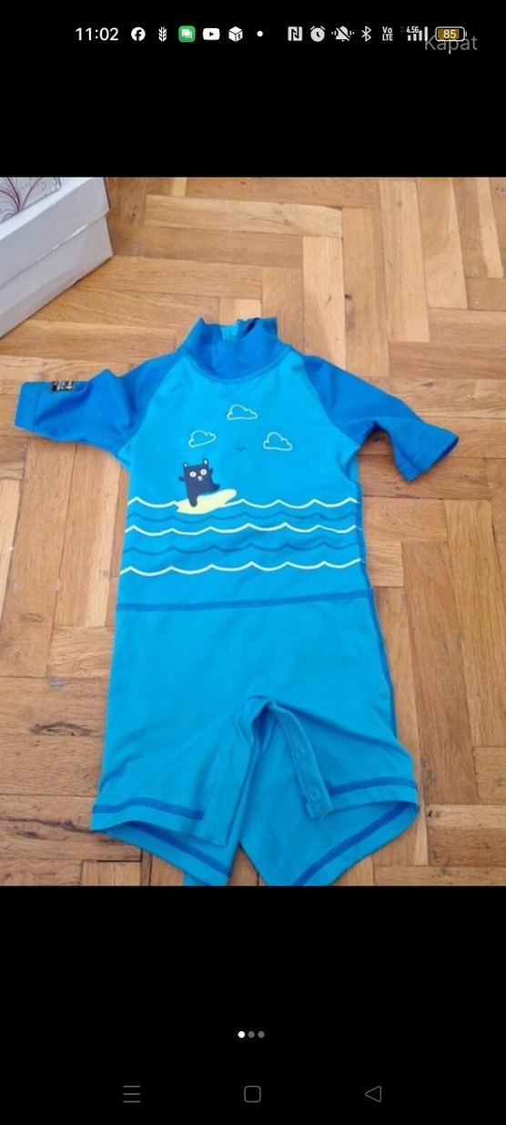 Erkek çocuklar için kısa kollu, parlak mavi renkte, dalgalar üzerinde sörf yapan ayı baskılı mayo. Alt kısmında çıtçıt düğmeli, rahat kullanım sağlar. 2 .fotoğraftaki koldaki etiket yıkanırken cikti başka hiç bir kusuru yok alicisna hayirli olsun 18 /24 ay
