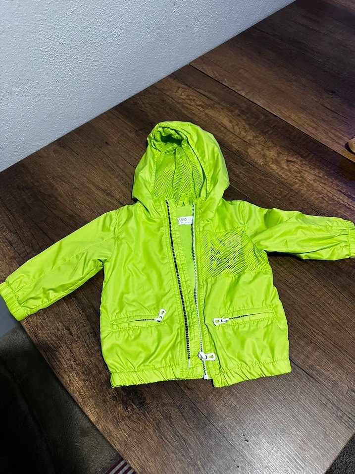 Erkek çocuklar için kapüşonlu ve fermuarlı cepli, yumuşak ve sıcak kumaştan yapılmış, parlak yeşil renkli baskılı, dar kesim bir yağmurluktur. ☔