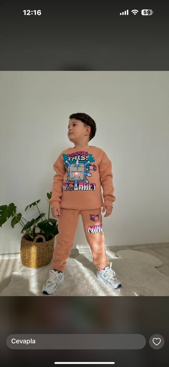 Erkek çocuklar için bol kesim, baskılı crew neck sweatshirt ve uyumlu pastel kahverengi eşofman altından oluşan takımdır. Yumuşak ve sıcak kumaştan yapılmıştır, rahat ve şık bir tarza uygundur. 4-5 yaş