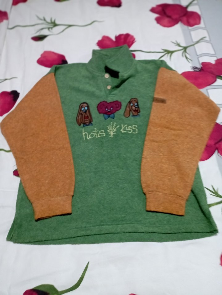 Erkek çocuk sweatshirt, uzun kollu ve yuvarlak yakalı, yumuşak kumaştan, bol kesim. Örme detaylı ve baskılı desenli, pastel kahverengi ve yeşil renklerde, sokak modasına uygun.