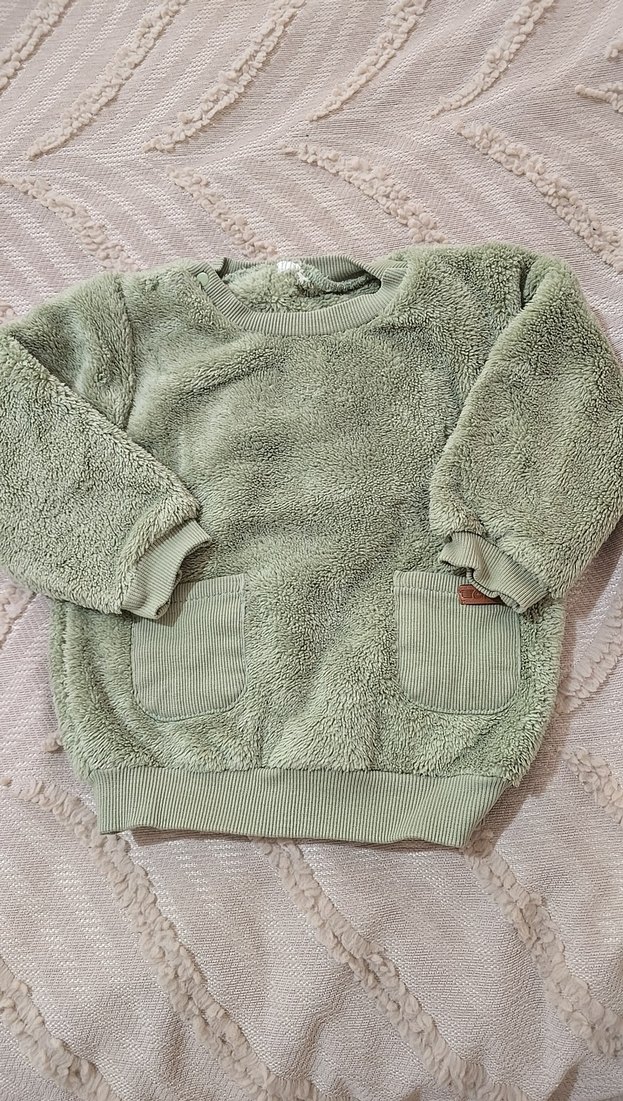 Kız çocukları için yumuşak ve sıcak peluş kumaştan, uzun kollu, yuvarlak yakalı ve bol kesim sweatshirt. Kürk detaylı ve ön ceplidir. Pastel gri renktedir. HİÇ GİYİLMEDİ SADECE ETİKETİ KOPARTILDI