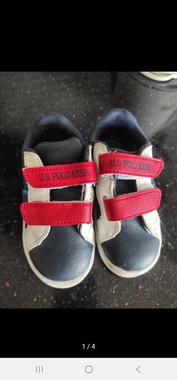 Ayakkabıyı oglum cok az giydi.Temiz kullanılmıstır.Kırmızı renkli, velcro bantlı ve kauçuk tabanlı erkek çocuk spor ayakkabısı. U.S. Polo Assn. baskılı, şık ve rahat sokak stili