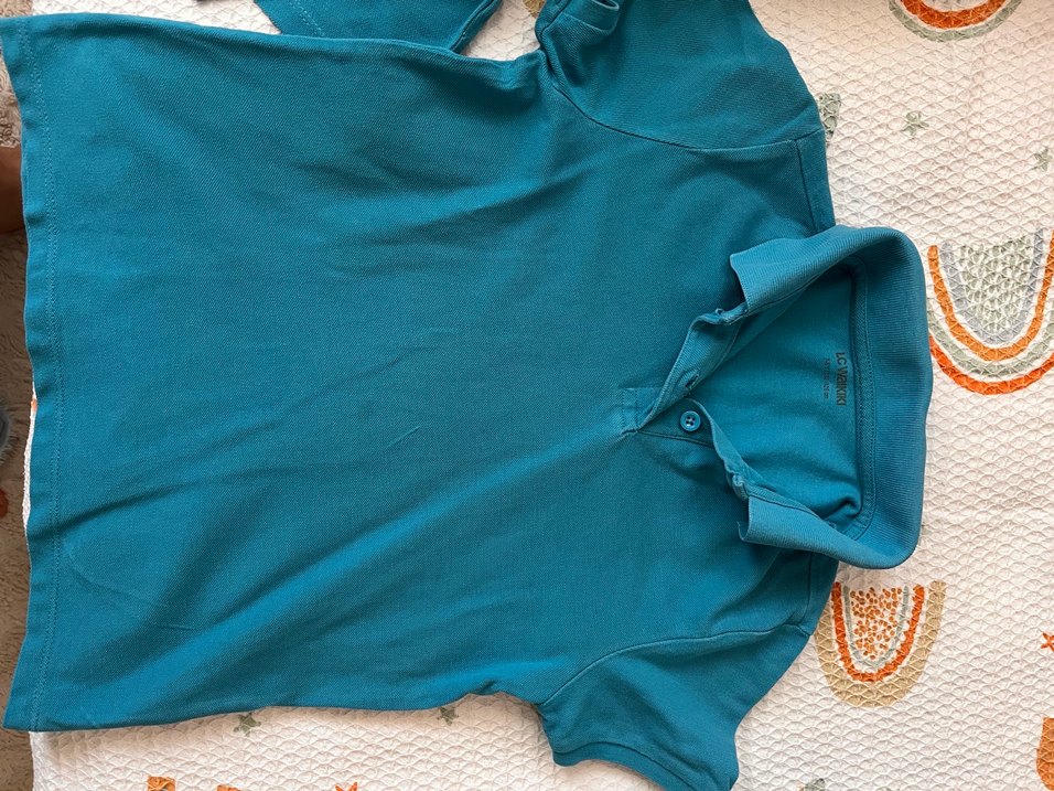 Düğmeli polo yaka, kısa kollu, fit kesim erkek tişörtü. Düz, koyu turkuaz renkte, sentetik yumuşak kumaştan üretilmiştir. 3 adet mevcuttur, adet fiyatı 140 tl