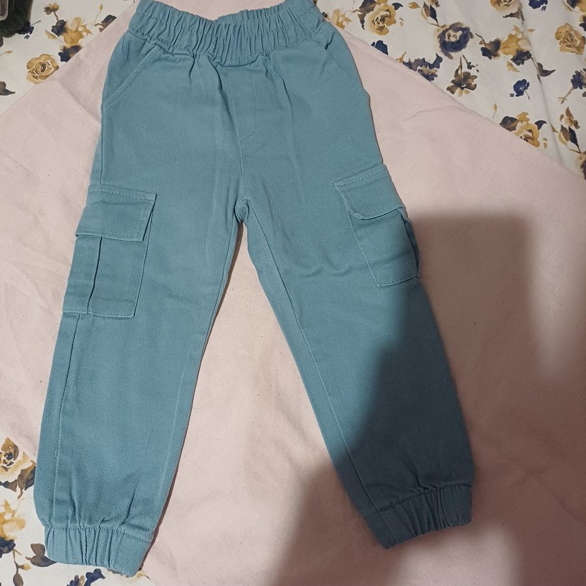 Erkek çocuklar için rahat kesim, gri denim kumaştan pantolon. Lastikli bel ve paçalarla konforlu, sade ve şık tasarım sunar.
