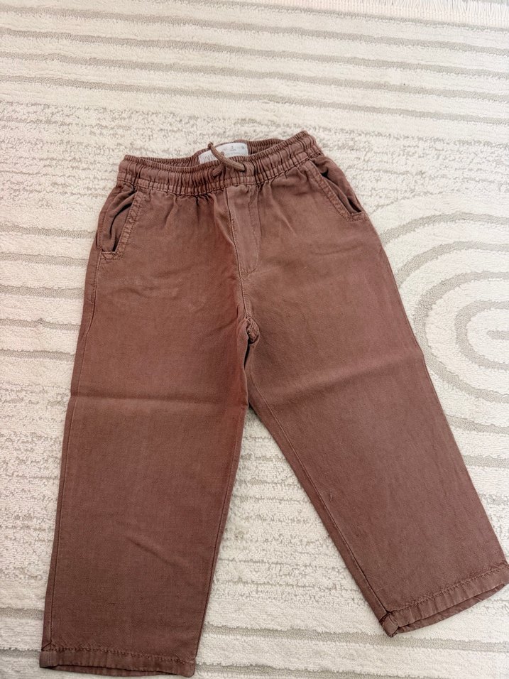Pamuklu, rahat kesim kahverengi erkek çocuk pantolonu, gündelik sokak stili için uygundur.
