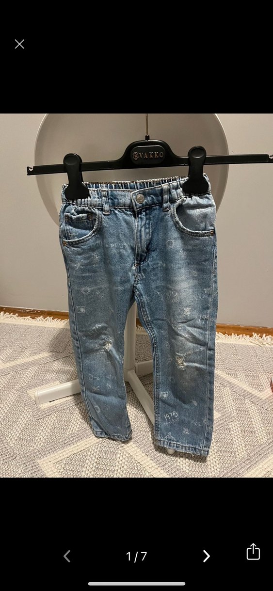 Zara markalı,batik desenli, rahat kesim erkek çocuk kot pantolon. Sokak stili için uygun.