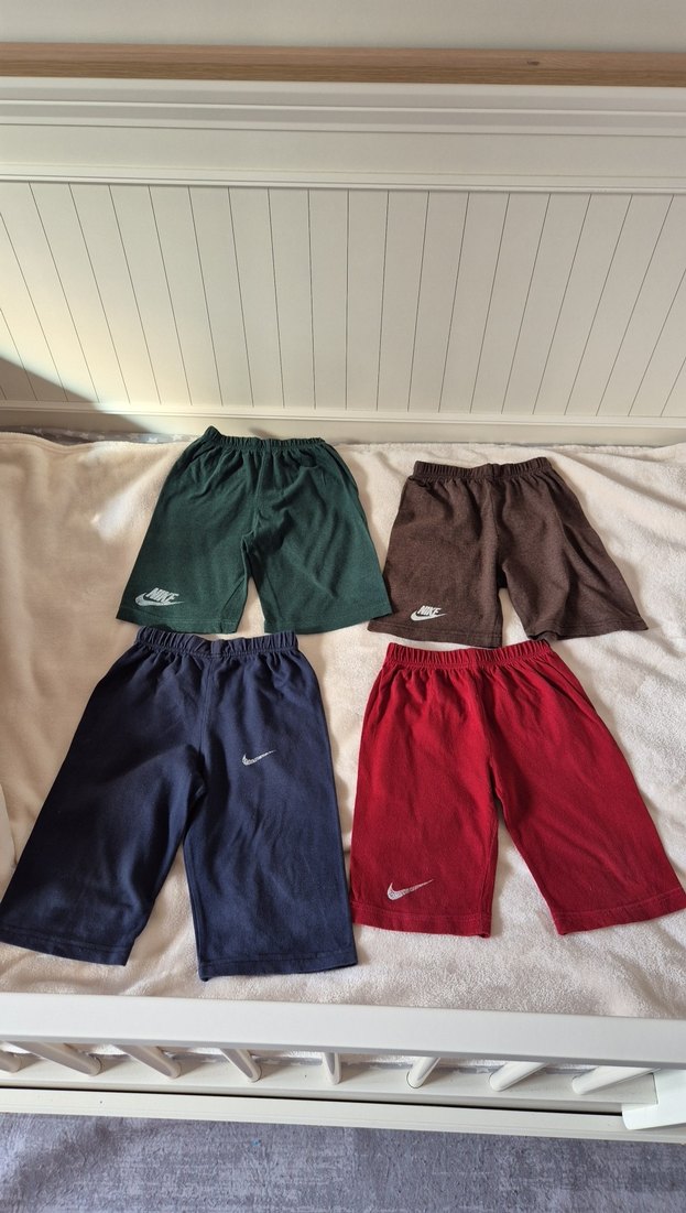 Koyu kahverengi, rahat kesim ve Nike logosu ile erkek çocuk için yumuşak ve konforlu spor şort. Orijinal değil, 4/5 yaş