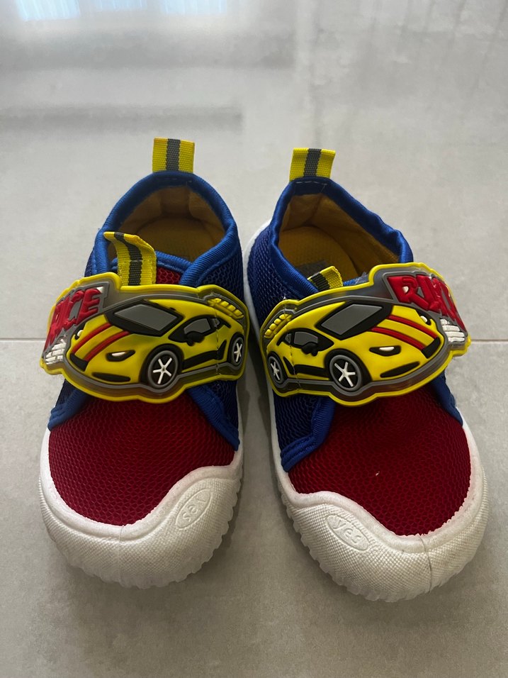 Renkli, baskılı arabalı desenli, kaymaz kauçuk tabanlı, cırt cırtlı erkek çocuk ayakkabısı. Street wear tarzında rahat kullanım sağlar. Alt tabana dikkat ediniz, evde ve az süre kreşte kullanıldı