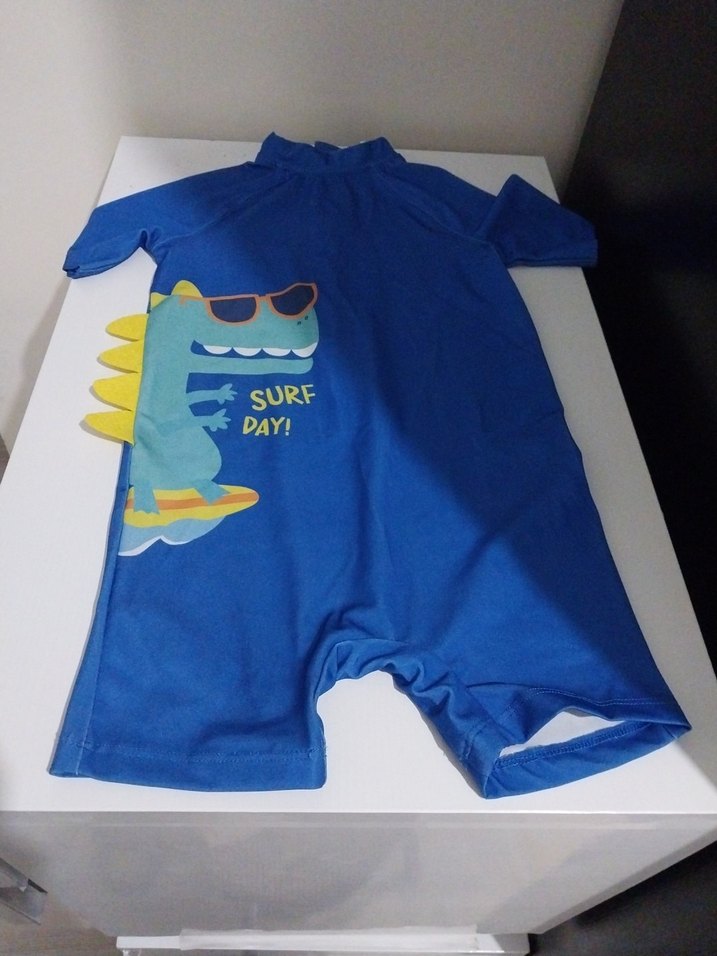 Erkek çocuklar için kısa kollu, renkli dinozor baskılı mavi mayo, rahat yüzme için uygundur. 4 5 yaş