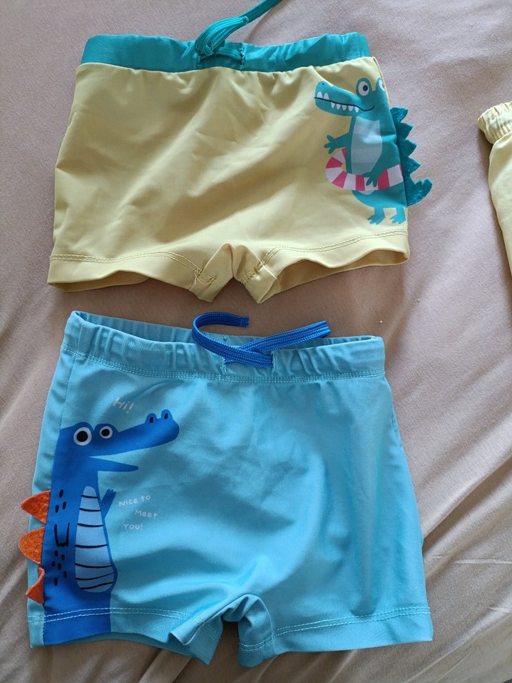 mayolar ve deniz terlikleri hepsi tertemiz hiç kullanılmadı şortlardan sarı olanlar 1-2 defa kullandı o kadar Mavi ve sarı tonlarda, oyuncu dinozor baskılı renkli erkek çocuk mayo. İpli bel ve kısa paça yapısıyla rahat kullanım sağlar.