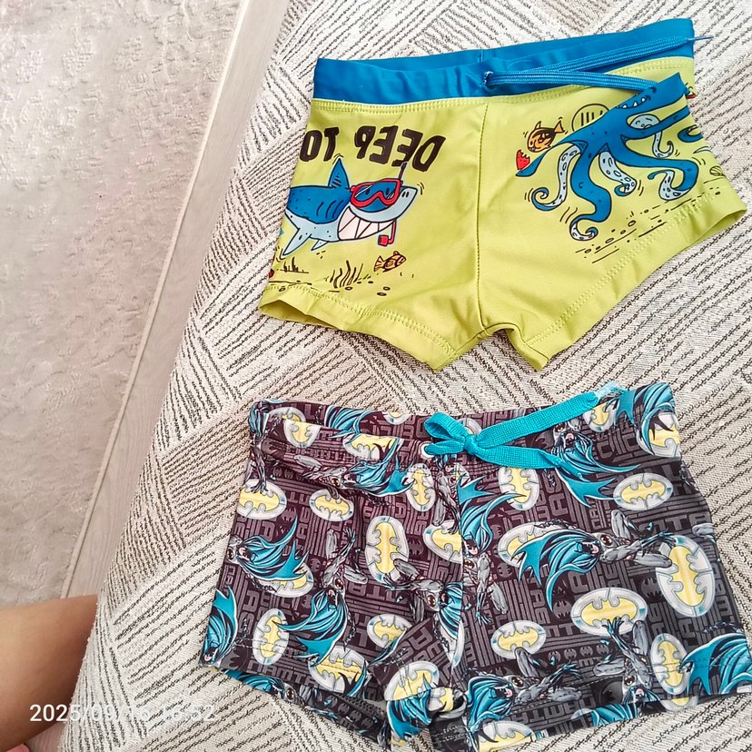 Renkli baskılı deniz canlıları ve eğlenceli desenlere sahip erkek çocuk mayo şortları, yaz su aktiviteleri için uygun.