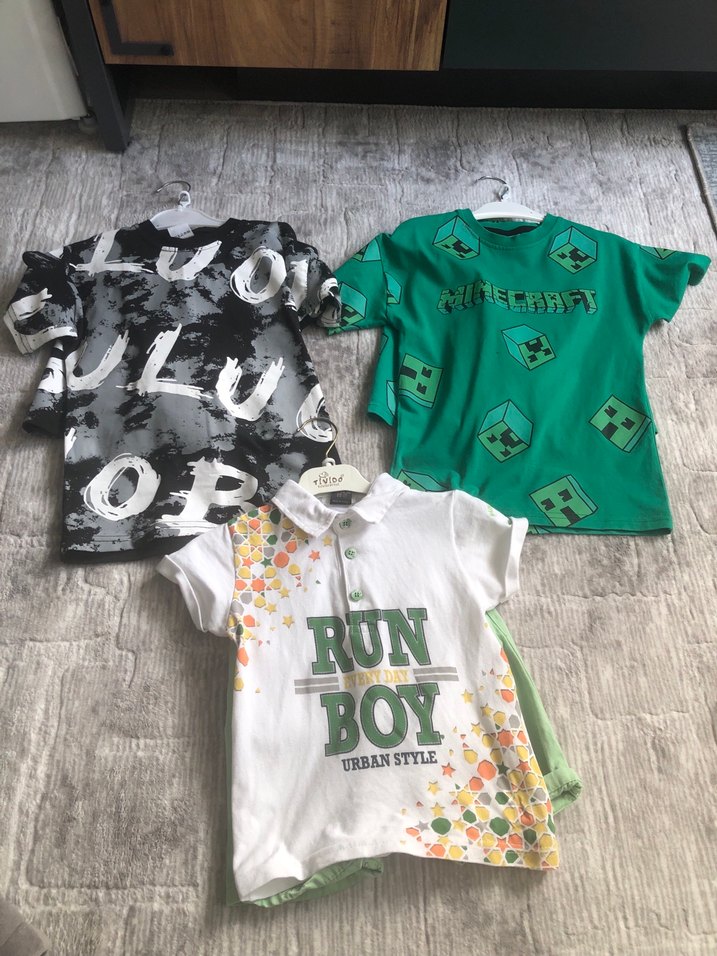 Yeşil renkli, pamuklu, kısa kollu erkek çocuk tişörtü. Renkli baskılı desenler ve yuvarlak yaka ile rahat kesim, sokak modasına uygun tarz sunar. "URBANSTYLE" yazısı bulunur. İki takım 4/5 yaş alttaki 2/3 yaş ürünler