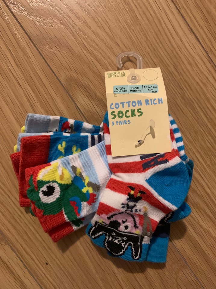 Renkli baskılı erkek çocuk çorapları, pamuk ağırlıklı kumaştan. Beş çiftlik pakette farklı yaşlara uygun.
