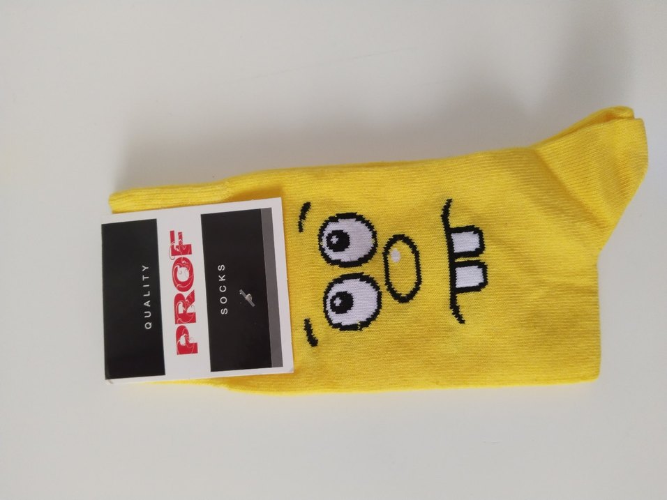 Erkek çocuklar için renkli sarı ve neşeli baskılı yüz deseni bulunan yumuşak ve rahat çoraplar.